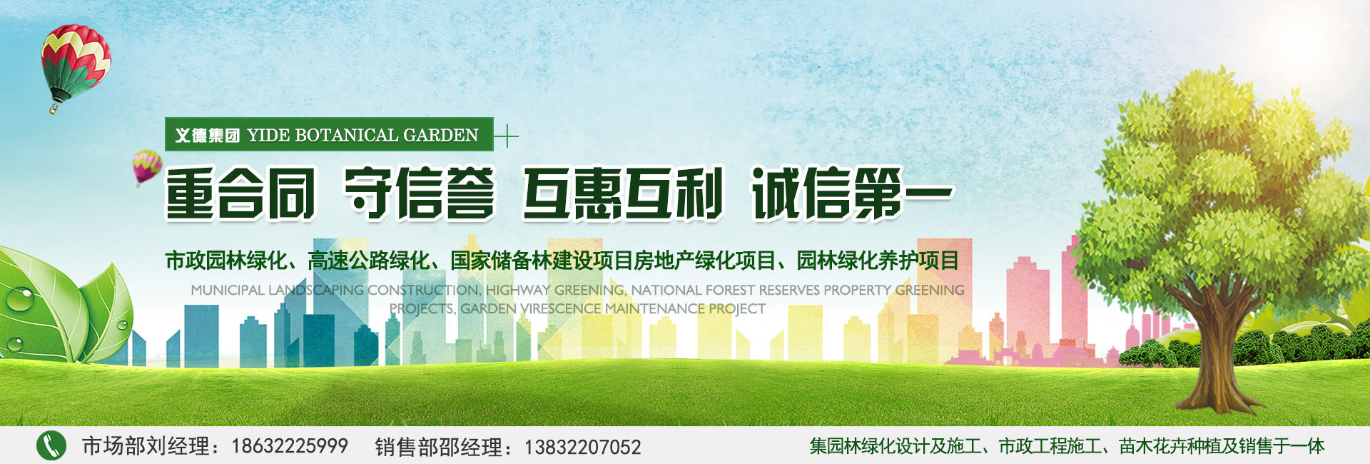 我公司本著重合同,守信譽(yù),互惠互利,誠信第一的態(tài)度,踏實(shí)干事業(yè),契約必踐行的園林宗旨,逐步發(fā)展為今天集園林綠化設(shè)計(jì)及施工、市政工程施工、苗木花卉種植及銷售等綜合性園林綠化行業(yè)公司。